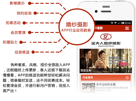率先拥有移动应用程序的众多知名企业已经在移动互联网时代 成功抢滩营销阵地,移动应用程序势必成为体现企业形象的重要元素之一,也是企业进入移动互联网时代的营销利器。